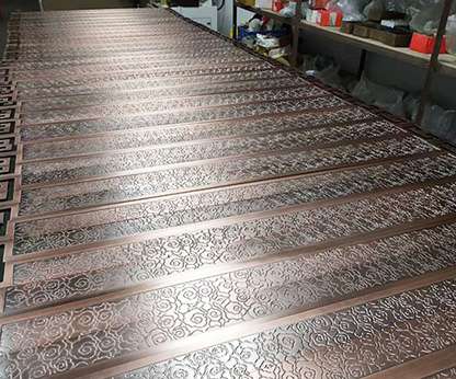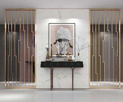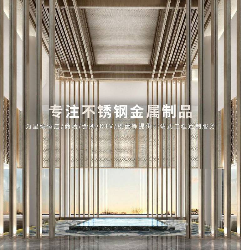 应用产品:不锈钢踢脚线、 不锈钢门套、不锈钢镜框、不锈钢镜面屏风、激光镂空屏风、管制屏风、不锈钢楼梯护栏、不锈钢大门