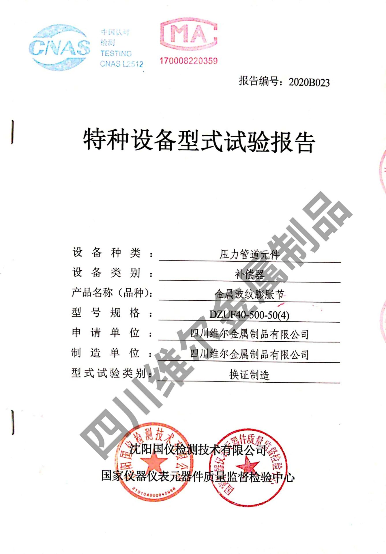 特种设备型式试验证书